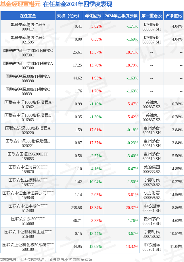 证券之星消息,日前国联安新精选混合A基金公布四季报,2024年四季度最新规模0.41亿元,季度净值涨幅为-1.71%。