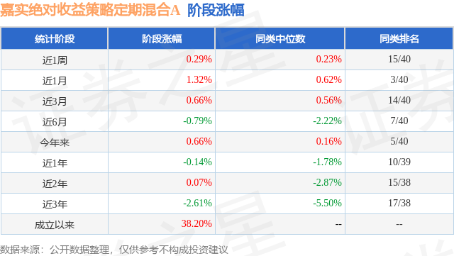 从业绩表现来看,嘉实绝对收益策略定期混合A基金过去一年净值涨幅为-0.14%,在同类基金中排名10/39,同类基金过去一年净值涨幅中位数为-1.78%。而基金过去一年的最大回撤为-3.97%,成立以来的最大回撤为-6.68%。