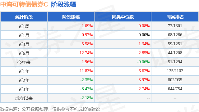 从业绩表现来看,中海可转债债券C基金过去一年净值涨幅为11.83%,在同类基金中排名135/1102,同类基金过去一年净值涨幅中位数为6.62%。而基金过去一年的最大回撤为-9.63%,成立以来的最大回撤为-63.95%。
