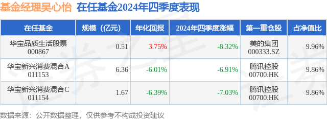华宝品质生活股票现任基金经理为吴心怡。其中在任基金经理吴心怡已从业3年又25天,2024年3月12日正式接手管理华宝品质生活股票,任职期间累计回报为-1.59%。目前还管理着3只基金产品(包括A类和C类)。