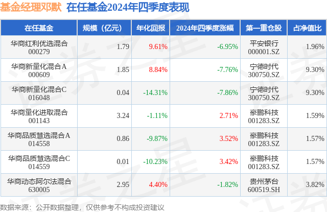 华商新量化混合A现任基金经理为邓默。其中在任基金经理邓默已从业9年又139天,2015年9月9日正式接手管理华商新量化混合A,任职期间累计回报为74.7%。目前还管理着7只基金产品(包括A类和C类),其中本季度表现最佳的基金为华商品质慧选混合A(014558),季度净值涨幅为3.52%。
