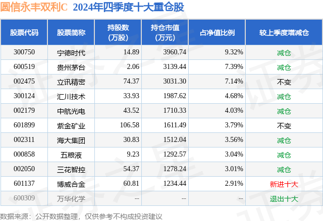 证券之星消息,日前圆信永丰双利C基金公布四季报,2024年四季度最新规模0.4亿元,季度净值涨幅为-5.37%。