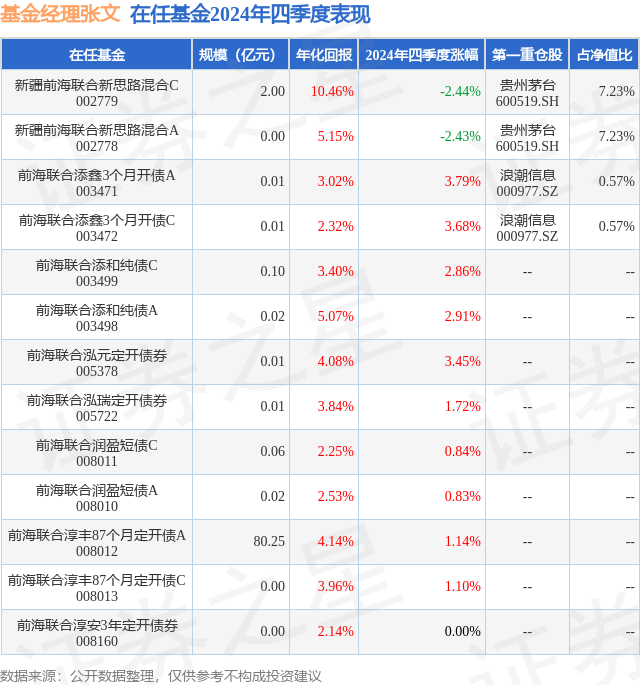 证券之星消息,日前前海联合添鑫3个月开债A基金公布四季报,2024年四季度最新规模0.01亿元,季度净值涨幅为3.79%。