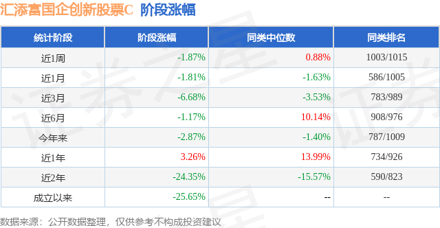 从业绩表现来看,汇添富国企创新股票C基金过去一年净值涨幅为3.26%,在同类基金中排名734/926,同类基金过去一年净值涨幅中位数为13.99%。而基金过去一年的最大回撤为-16.64%,成立以来的最大回撤为-36.56%。