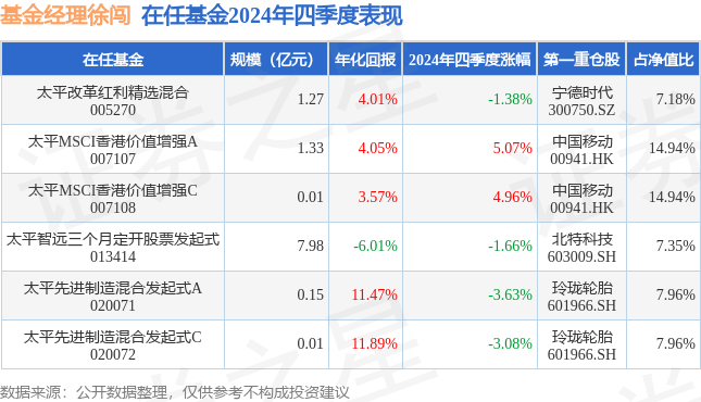 证券之星消息,日前太平智远三个月定开股票发起式基金公布四季报,2024年四季度最新规模7.98亿元,季度净值涨幅为-1.66%。