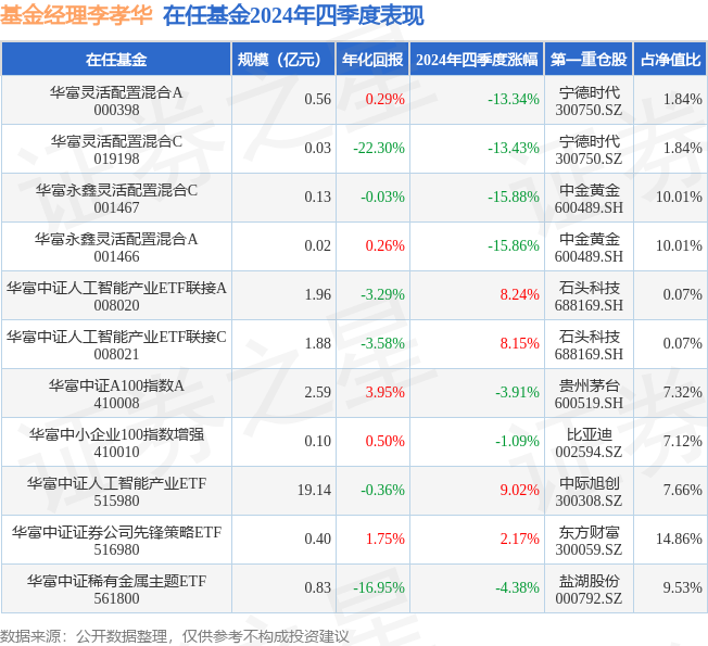 证券之星消息,日前华富中证稀有金属主题ETF基金公布四季报,2024年四季度最新规模0.83亿元,季度净值涨幅为-4.38%。