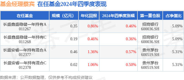 证券之星消息,日前长盛鑫盛稳健一年持有C基金公布四季报,2024年四季度最新规模0.19亿元,季度净值涨幅为0.36%。