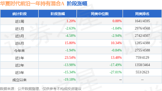 从业绩表现来看,华夏时代前沿一年持有混合A基金过去一年净值涨幅为23.54%,在同类基金中排名759/4129,同类基金过去一年净值涨幅中位数为13.48%。而基金过去一年的最大回撤为-13.8%,成立以来的最大回撤为-42.23%。