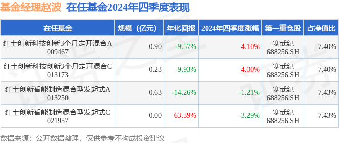 红土创新科技创新3个月定开混合C现任基金经理为赵波。其中在任基金经理赵波已从业9年又117天,2024年2月7日正式接手管理红土创新科技创新3个月定开混合C,任职期间累计回报为45.53%。目前还管理着4只基金产品(包括A类和C类),其中本季度表现最佳的基金为红土创新科技创新3个月定开混合A(009467),季度净值涨幅为4.1%。
