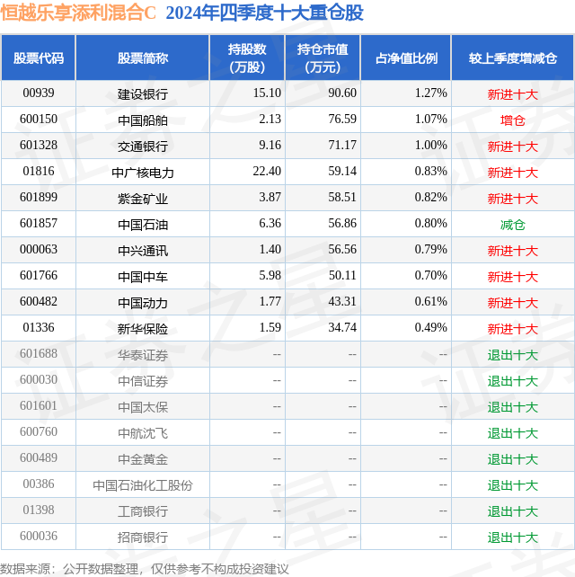 证券之星消息,日前恒越乐享添利混合C基金公布四季报,2024年四季度最新规模0.39亿元,季度净值涨幅为-0.49%。