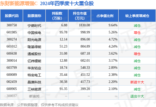 证券之星消息,日前东财新能源增强C基金公布四季报,2024年四季度最新规模1.13亿元,季度净值涨幅为-3.53%。
