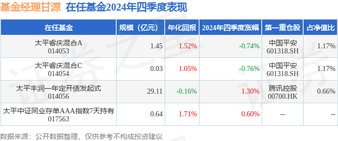 太平丰润一年定开债发起式现任基金经理为甘源 赵超 苏大明,本季度增聘基金经理苏大明。其中在任基金经理甘源已从业3年又336天,2021年11月18日正式接手管理太平丰润一年定开债发起式,任职期间累计回报为-0.5%。目前还管理着4只基金产品(包括A类和C类),其中本季度表现最佳的基金为太平丰润一年定开债发起式(014056),季度净值涨幅为1.3%。