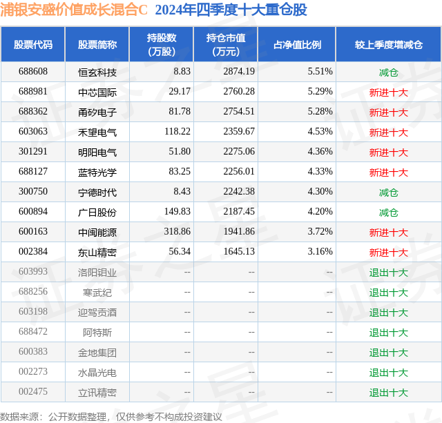 证券之星消息,日前浦银安盛价值成长混合C基金公布四季报,2024年四季度最新规模0.01亿元,季度净值涨幅为2.45%。