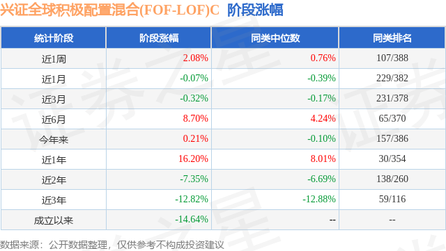 从业绩表现来看,兴证全球积极配置混合(FOF-LOF)C基金过去一年净值涨幅为16.2%,在同类基金中排名30/354,同类基金过去一年净值涨幅中位数为8.01%。而基金过去一年的最大回撤为-12.59%,成立以来的最大回撤为-30.21%。