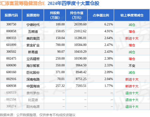 证券之星消息,日前汇添富蓝筹稳健混合E基金公布四季报,2024年四季度最新规模0.07亿元,季度净值涨幅为-4.2%。