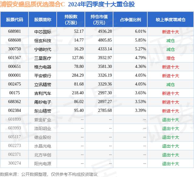 证券之星消息,日前浦银安盛品质优选混合C基金公布四季报,2024年四季度最新规模0.31亿元,季度净值涨幅为-0.29%。