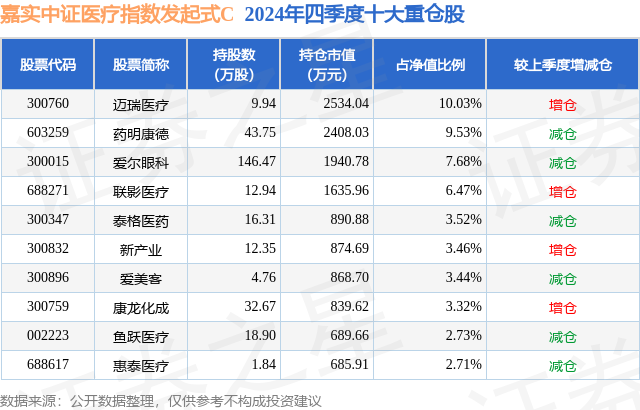证券之星消息,日前嘉实中证医疗指数发起式C基金公布四季报,2024年四季度最新规模2.21亿元,季度净值涨幅为-10.31%。