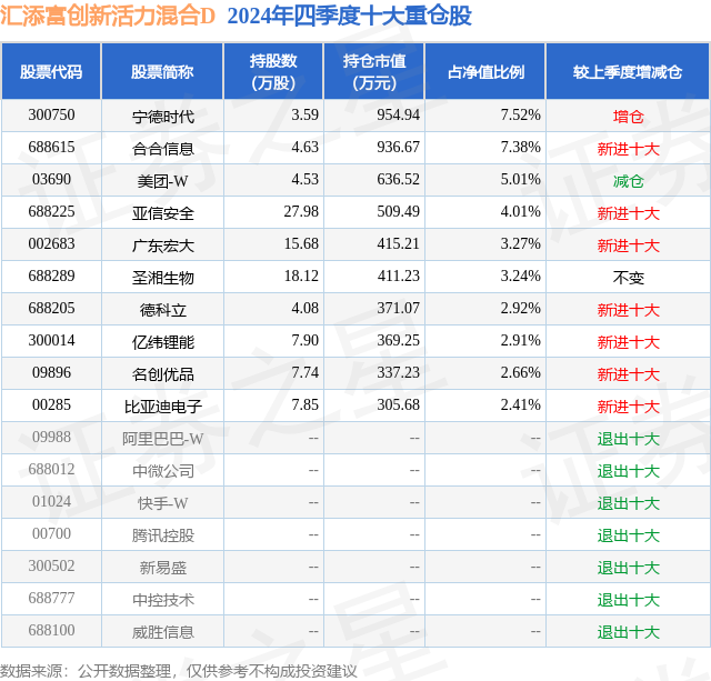 证券之星消息,日前汇添富创新活力混合D基金公布四季报,2024年四季度最新规模0.0亿元,季度净值涨幅为-1.98%。