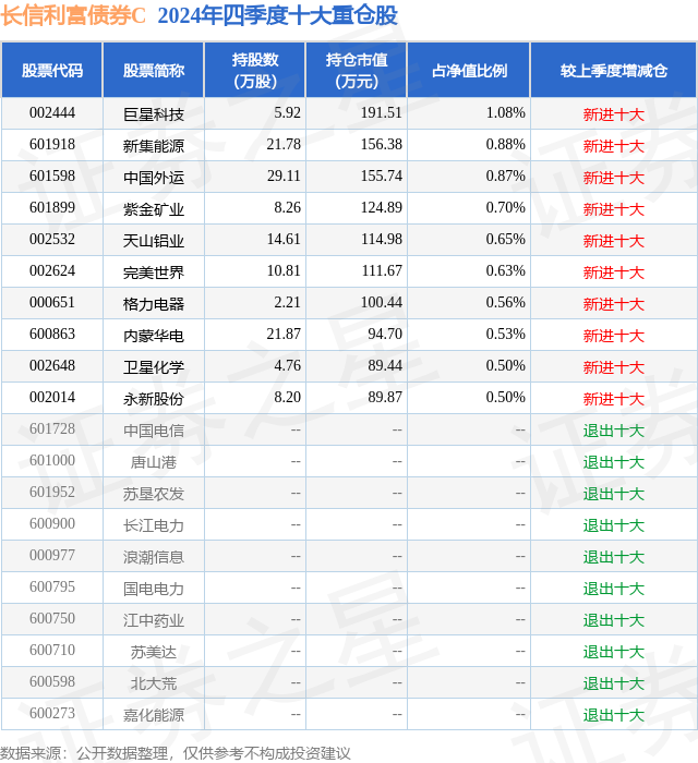 证券之星消息,日前长信利富债券C基金公布四季报,2024年四季度最新规模0.48亿元,季度净值涨幅为0.74%。