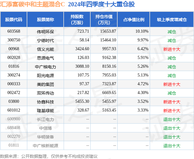 证券之星消息,日前汇添富碳中和主题混合C基金公布四季报,2024年四季度最新规模2.8亿元,季度净值涨幅为-10.2%。