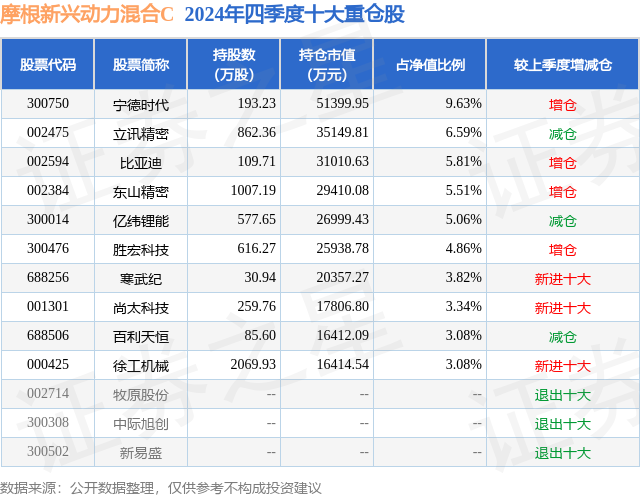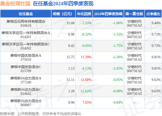 证券之星消息,日前摩根新兴动力混合C基金公布四季报,2024年四季度最新规模1.28亿元,季度净值涨幅为-0.98%。