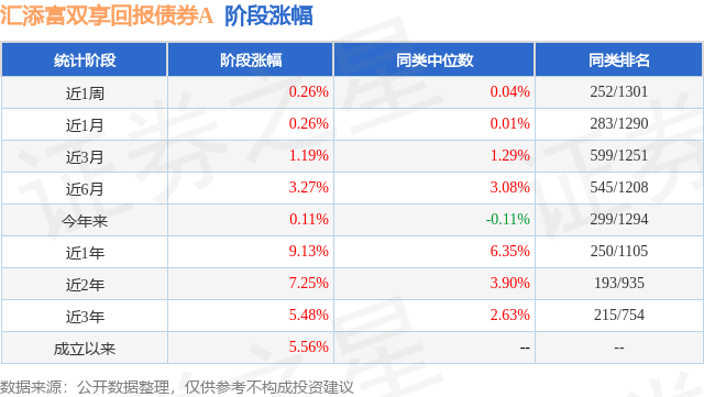 从业绩表现来看,汇添富双享回报债券A基金过去一年净值涨幅为9.13%,在同类基金中排名250/1105,同类基金过去一年净值涨幅中位数为6.35%。而基金过去一年的最大回撤为-1.97%,成立以来的最大回撤为-5.04%。
