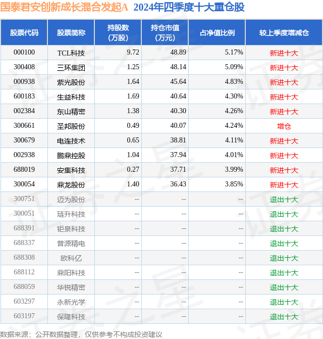 证券之星消息,日前国泰君安创新成长混合发起A基金公布四季报,2024年四季度最新规模0.08亿元,季度净值涨幅为7.5%。