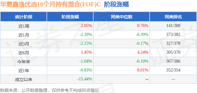 从业绩表现来看,华夏鑫逸优选18个月持有混合(FOF)C基金过去一年净值涨幅为-0.83%,在同类基金中排名352/354,同类基金过去一年净值涨幅中位数为8.01%。而基金过去一年的最大回撤为-12.34%,成立以来的最大回撤为-22.68%。