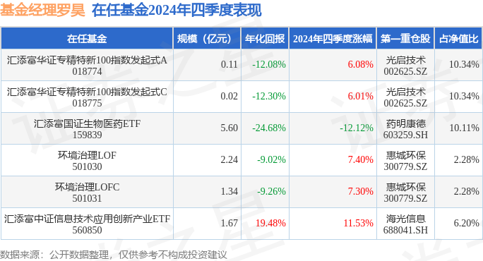 证券之星消息,日前汇添富华证专精特新100指数发起式C基金公布四季报,2024年四季度最新规模0.02亿元,季度净值涨幅为6.01%。