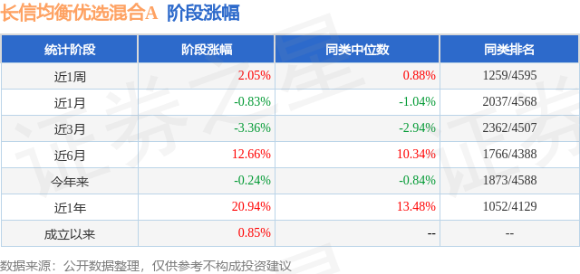 从业绩表现来看,长信均衡优选混合A基金过去一年净值涨幅为20.94%,在同类基金中排名1052/4129,同类基金过去一年净值涨幅中位数为13.48%。而基金过去一年的最大回撤为-13.74%,成立以来的最大回撤为-25.96%。