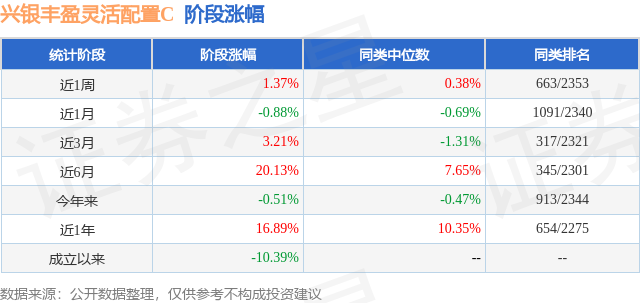 从业绩表现来看,兴银丰盈灵活配置C基金过去一年净值涨幅为16.89%,在同类基金中排名654/2275,同类基金过去一年净值涨幅中位数为10.35%。而基金过去一年的最大回撤为-16.24%,成立以来的最大回撤为-31.94%。