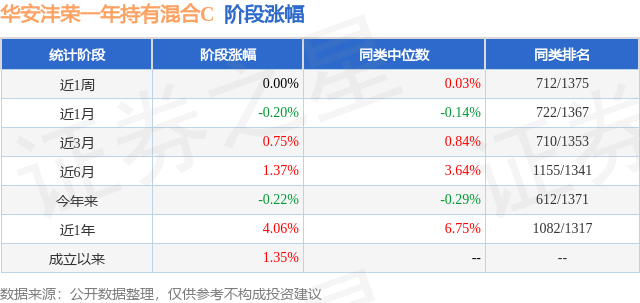 从业绩表现来看,华安沣荣一年持有混合C基金过去一年净值涨幅为4.06%,在同类基金中排名1082/1317,同类基金过去一年净值涨幅中位数为6.75%。而基金过去一年的最大回撤为-1.12%,成立以来的最大回撤为-3.89%。