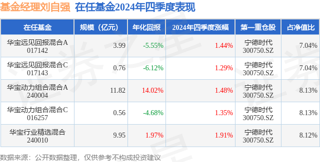 证券之星消息,日前华宝远见回报混合A基金公布四季报,2024年四季度最新规模3.99亿元,季度净值涨幅为1.44%。