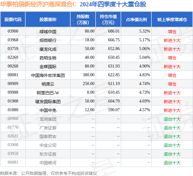 证券之星消息,日前华泰柏瑞新经济沪港深混合C基金公布四季报,2024年四季度最新规模0.2亿元,季度净值涨幅为-7.78%。