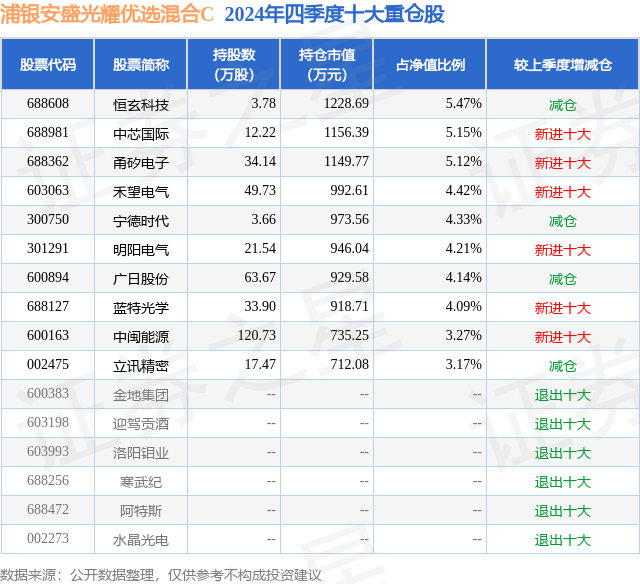 证券之星消息,日前浦银安盛光耀优选混合C基金公布四季报,2024年四季度最新规模1.58亿元,季度净值涨幅为2.82%。