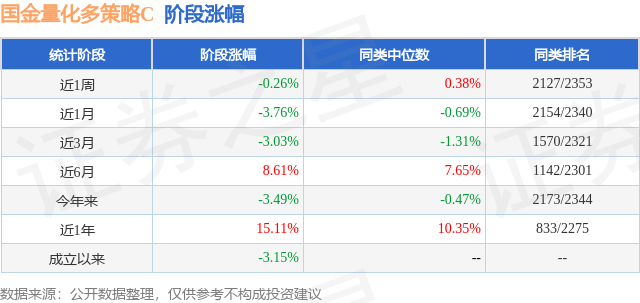 从业绩表现来看,国金量化多策略C基金过去一年净值涨幅为15.11%,在同类基金中排名833/2275,同类基金过去一年净值涨幅中位数为10.35%。而基金过去一年的最大回撤为-14.39%,成立以来的最大回撤为-28.39%。