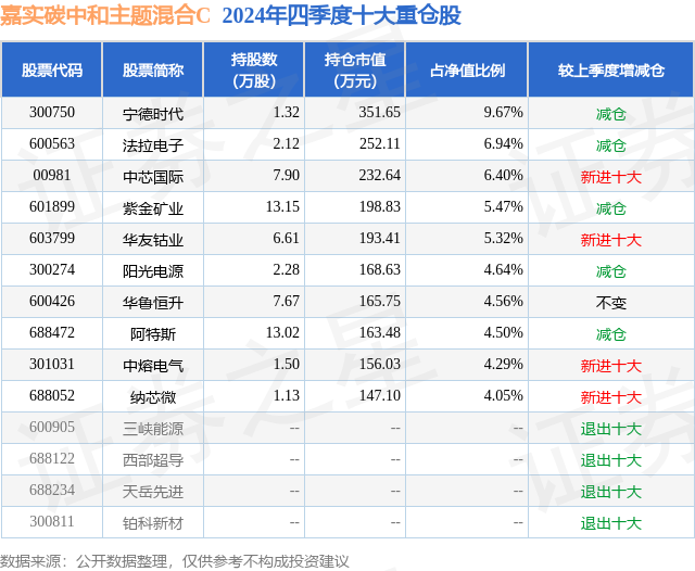 证券之星消息,日前嘉实碳中和主题混合C基金公布四季报,2024年四季度最新规模0.19亿元,季度净值涨幅为-0.79%。