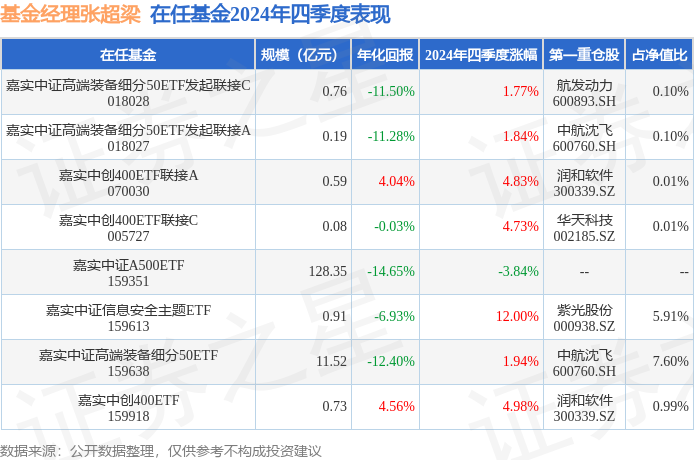 嘉实中证高端装备细分50ETF发起联接A现任基金经理为张超梁。其中在任基金经理张超梁已从业3年又106天,2024年9月27日正式接手管理嘉实中证高端装备细分50ETF发起联接A,任职期间累计回报为10.25%。目前还管理着8只基金产品(包括A类和C类),其中本季度表现最佳的基金为嘉实中证信息安全主题ETF(159613),季度净值涨幅为12.0%。
