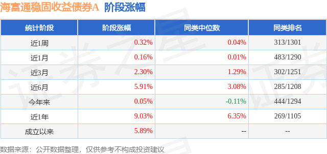 从业绩表现来看,海富通稳固收益债券A基金过去一年净值涨幅为9.03%,在同类基金中排名269/1105,同类基金过去一年净值涨幅中位数为6.35%。而基金过去一年的最大回撤为-4.13%,成立以来的最大回撤为-5.91%。
