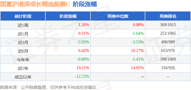从业绩表现来看,国富沪港深成长精选股票C基金过去一年净值涨幅为19.11%,在同类基金中排名316/926,同类基金过去一年净值涨幅中位数为14.05%。而基金过去一年的最大回撤为-13.58%,成立以来的最大回撤为-31.49%。