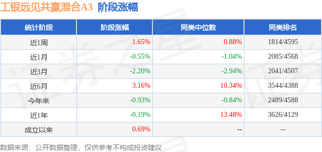 从业绩表现来看,工银远见共赢混合A3基金过去一年净值涨幅为-0.19%,在同类基金中排名3626/4129,同类基金过去一年净值涨幅中位数为13.48%。而基金过去一年的最大回撤为-10.86%,成立以来的最大回撤为-10.86%。