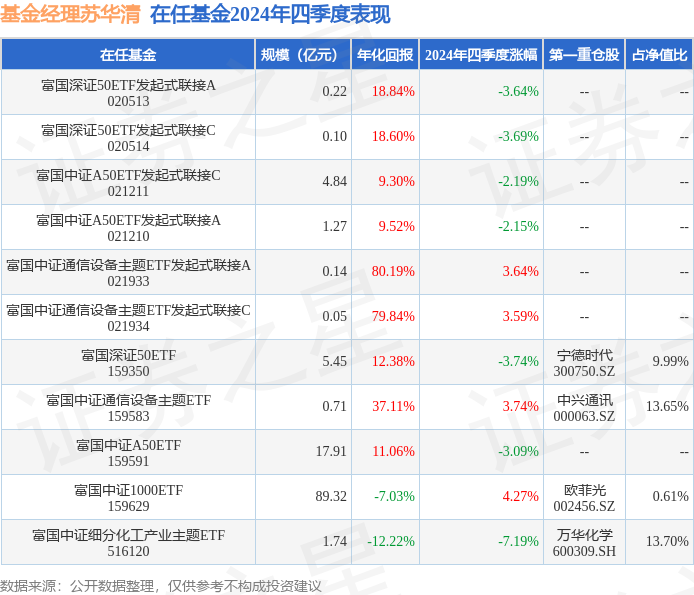 证券之星消息,日前富国深证50ETF基金公布四季报,2024年四季度最新规模5.45亿元,季度净值涨幅为-3.74%。