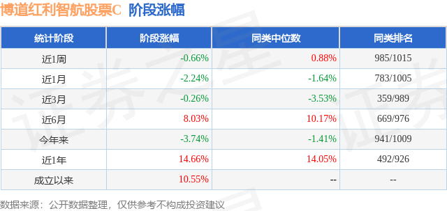 从业绩表现来看,博道红利智航股票C基金过去一年净值涨幅为14.66%,在同类基金中排名492/926,同类基金过去一年净值涨幅中位数为14.05%。而基金过去一年的最大回撤为-14.23%,成立以来的最大回撤为-14.23%。