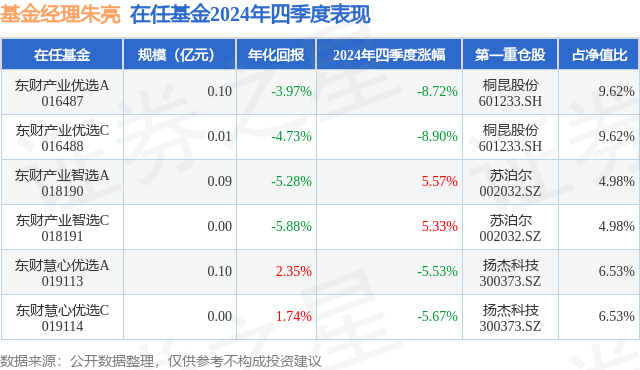 证券之星消息,日前东财慧心优选A基金公布四季报,2024年四季度最新规模0.1亿元,季度净值涨幅为-5.53%。