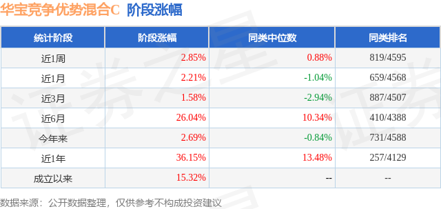 从业绩表现来看,华宝竞争优势混合C基金过去一年净值涨幅为36.15%,在同类基金中排名257/4129,同类基金过去一年净值涨幅中位数为13.48%。而基金过去一年的最大回撤为-17.81%,成立以来的最大回撤为-31.11%。