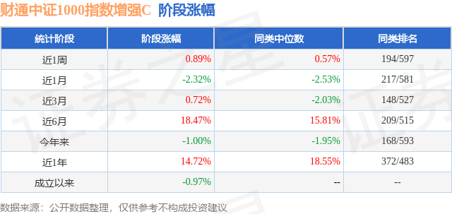从业绩表现来看,财通中证1000指数增强C基金过去一年净值涨幅为14.72%,在同类基金中排名372/483,同类基金过去一年净值涨幅中位数为18.55%。而基金过去一年的最大回撤为-19.37%,成立以来的最大回撤为-26.02%。