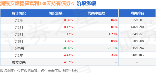 证券之星消息,日前浦银安盛稳健富利180天持有债券A基金公布四季报,2024年四季度最新规模0.55亿元,季度净值涨幅为0.91%。