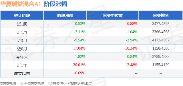 从业绩表现来看,华夏瑞益混合A1基金过去一年净值涨幅为20.01%,在同类基金中排名1155/4129,同类基金过去一年净值涨幅中位数为13.48%。而基金过去一年的最大回撤为-17.67%,成立以来的最大回撤为-20.44%。