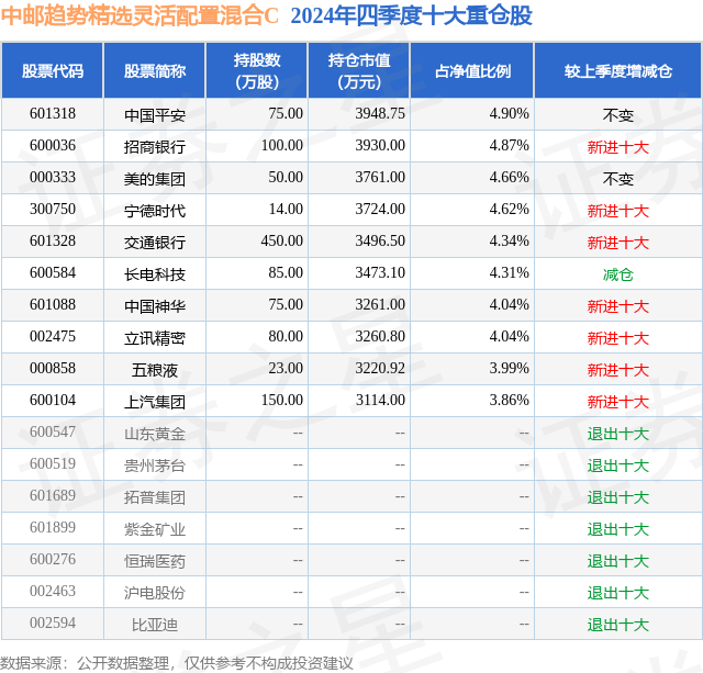 证券之星消息,日前中邮趋势精选灵活配置混合C基金公布四季报,2024年四季度最新规模0.0亿元,季度净值涨幅为-5.73%。