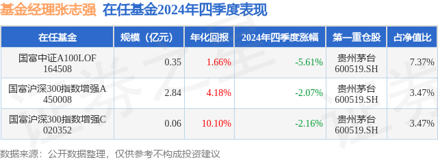 国富沪深300指数增强C现任基金经理为张志强。其中在任基金经理张志强已从业11年又312天,2024年1月9日正式接手管理国富沪深300指数增强C,任职期间累计回报为10.1%。目前还管理着3只基金产品(包括A类和C类)。